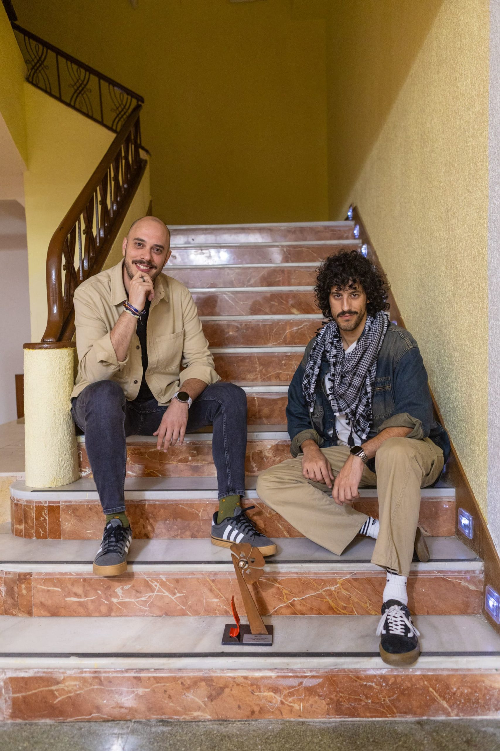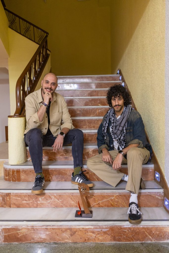 David Tobaja, director del Centro Padre Cristóbal de Mérida, entregó el premio a Fernando Nieto y Juan Vázquez, directores del documental.