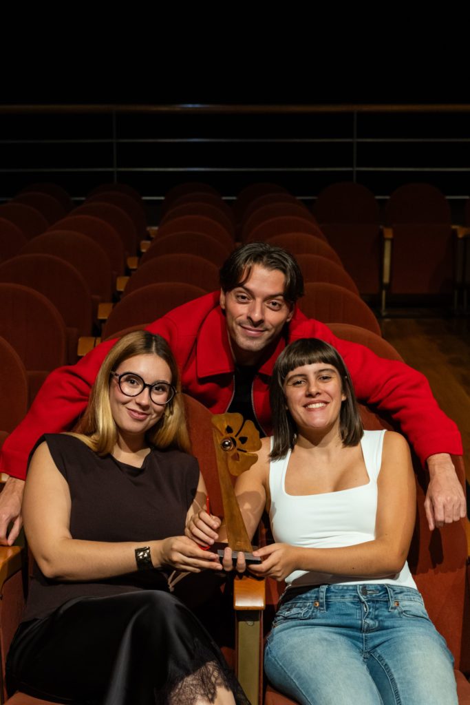 Isabel María Monge, directora, y Ester Romero, productora, recogieron el galardón de manos de Loli de Fátima, madre de Ester.